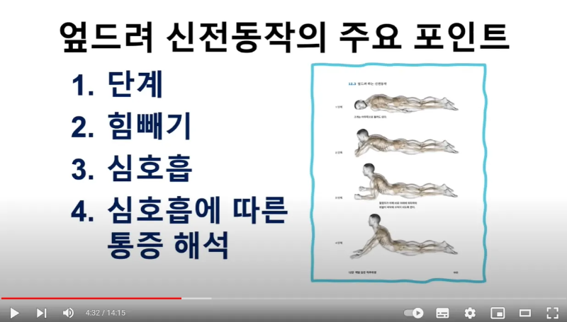 엎드려 신전동작에 대한 자세한 설명은 유튜브에 있는 정선근 TV 채널에 있는 동영상을 보시면 매우 상세하게 설명해주고 있습니다.